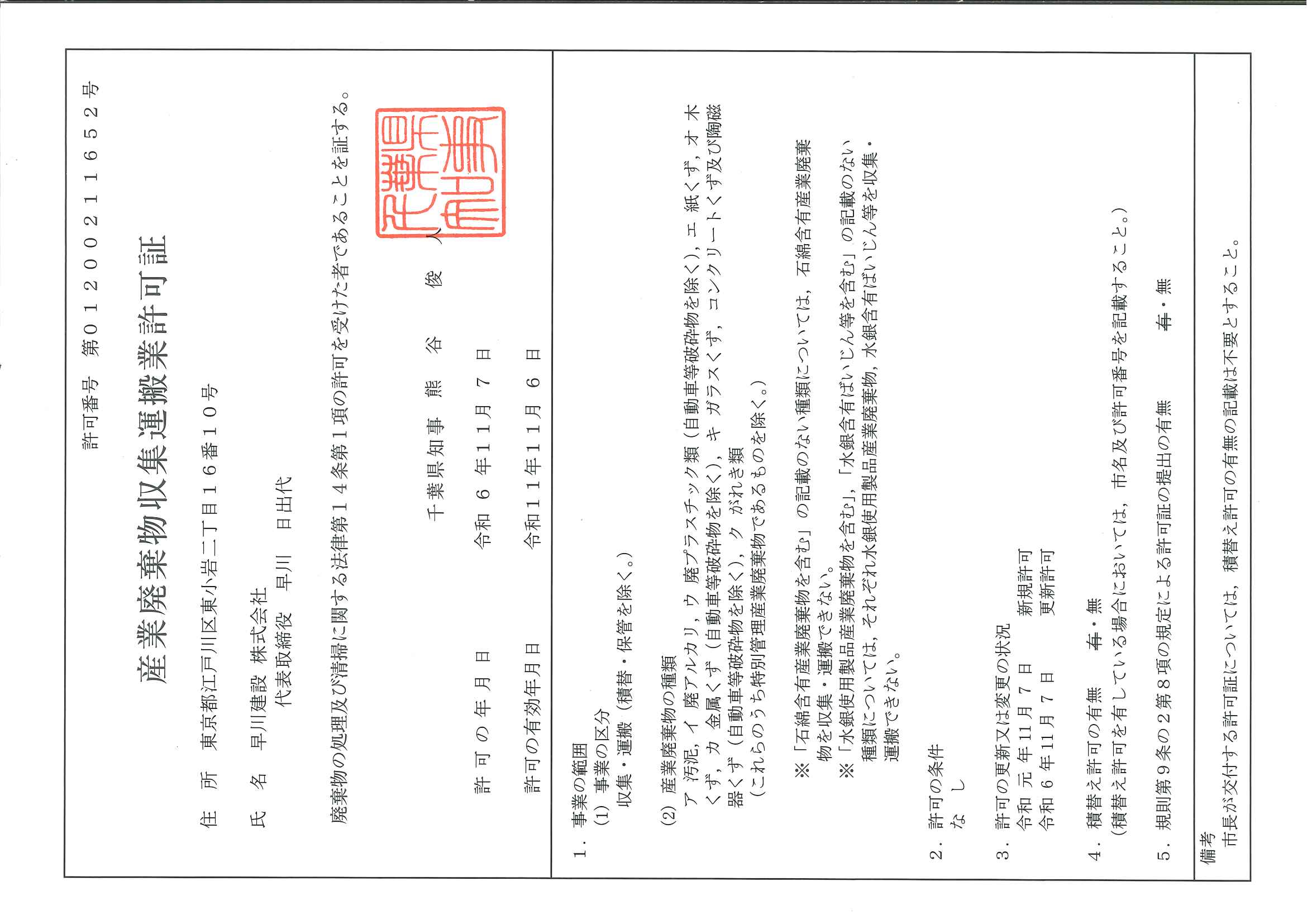 産業廃棄物収集運搬業許可取得(東京都、千葉県)