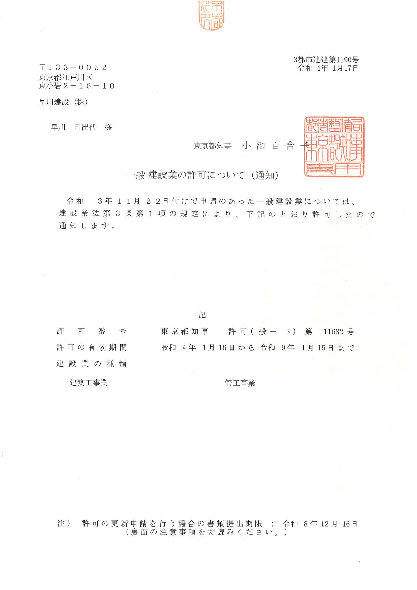 早川建設株式会社設立。江戸川区松本1-16-11にて営業開始。