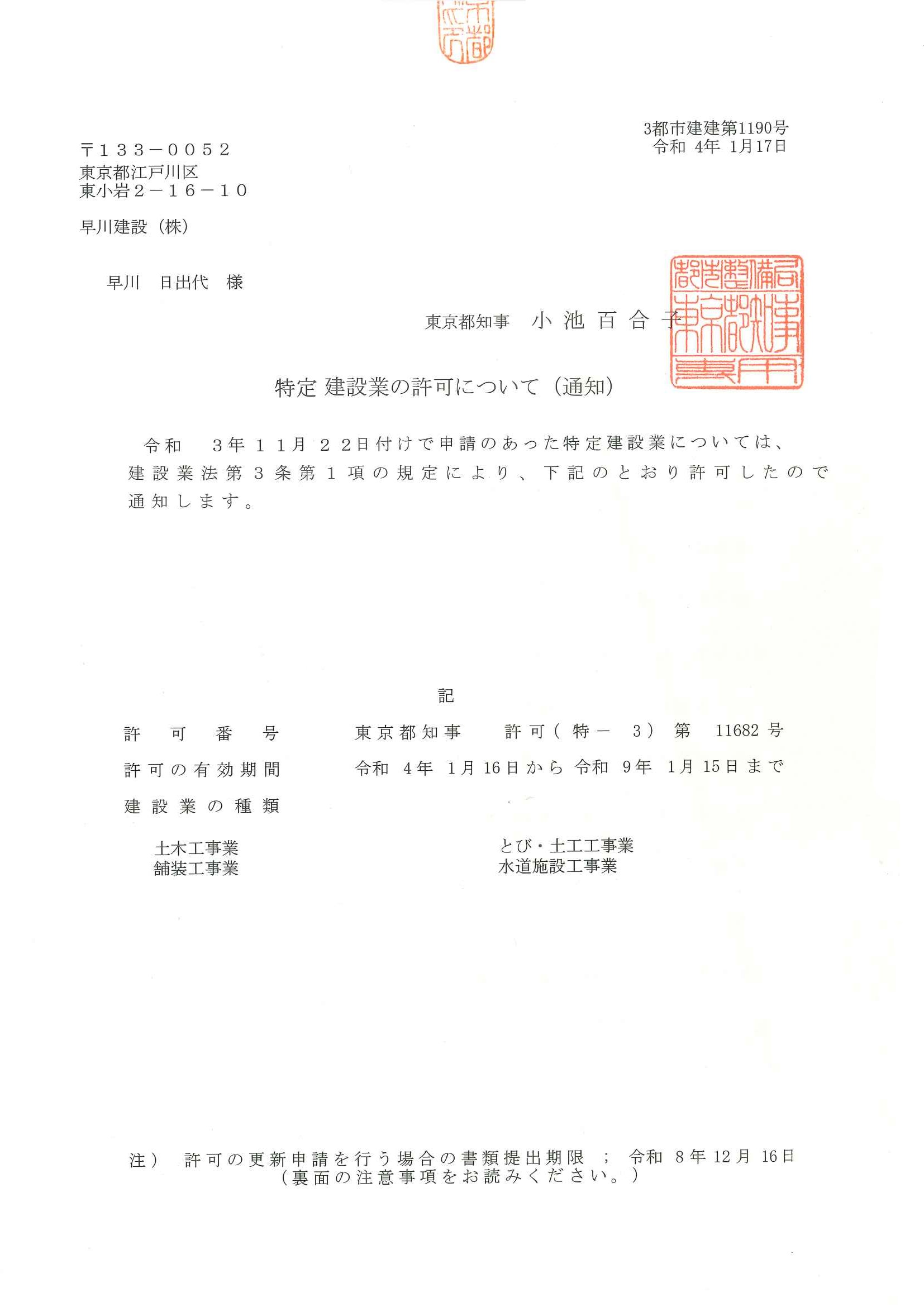 土木工事業 とび・土木工事業 ほ装工事業 水道施設工事業